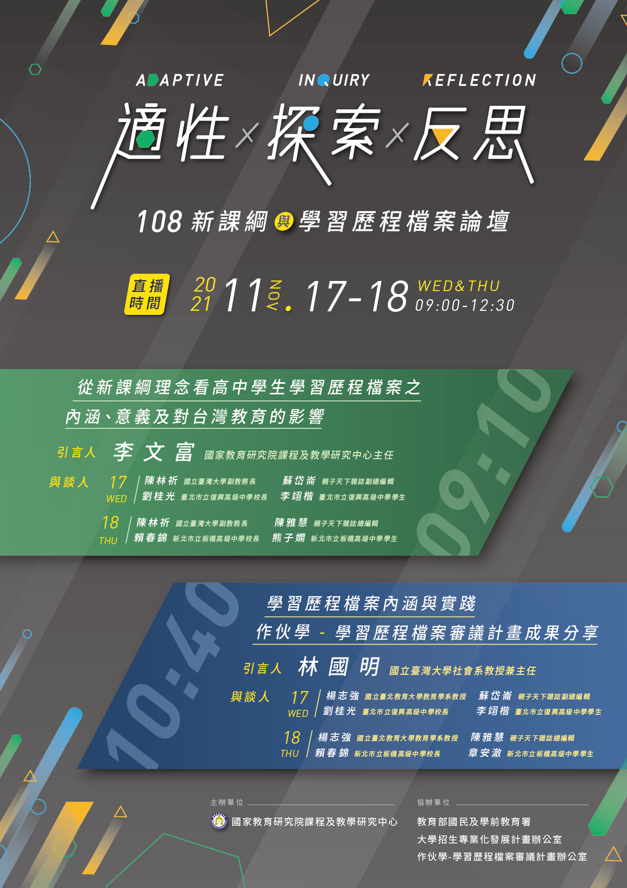 活動報名(即日起至11/12止,若錯過報名,仍歡迎當日至YouTube參加):https://workshop.naer.edu.tw/NAWeb/Services/wFrmEnrol.aspx