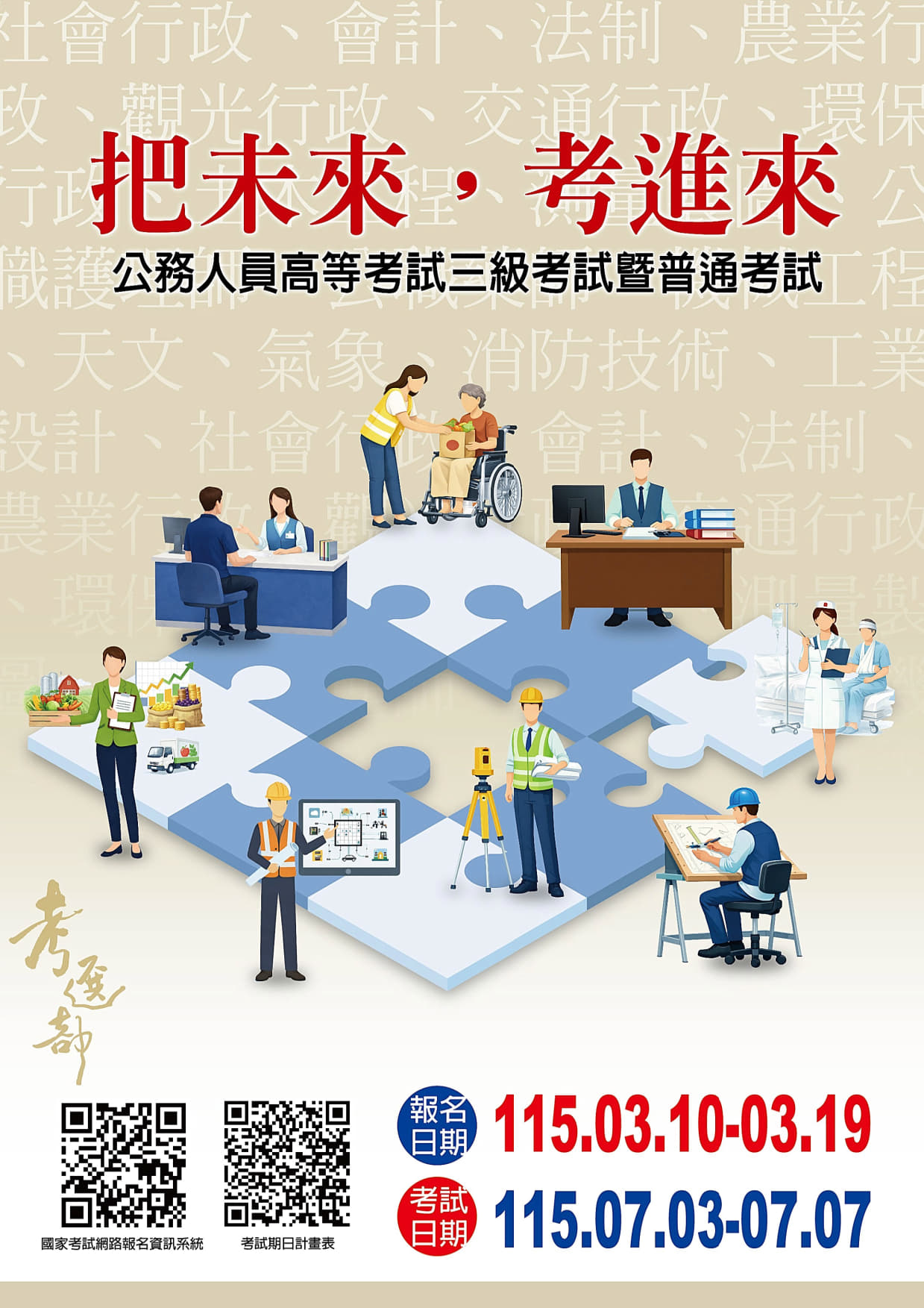 旨揭考試定於2026年3月10日至19日報名,並於同年7月3日至7日舉行考試,歡迎踴躍報名。
