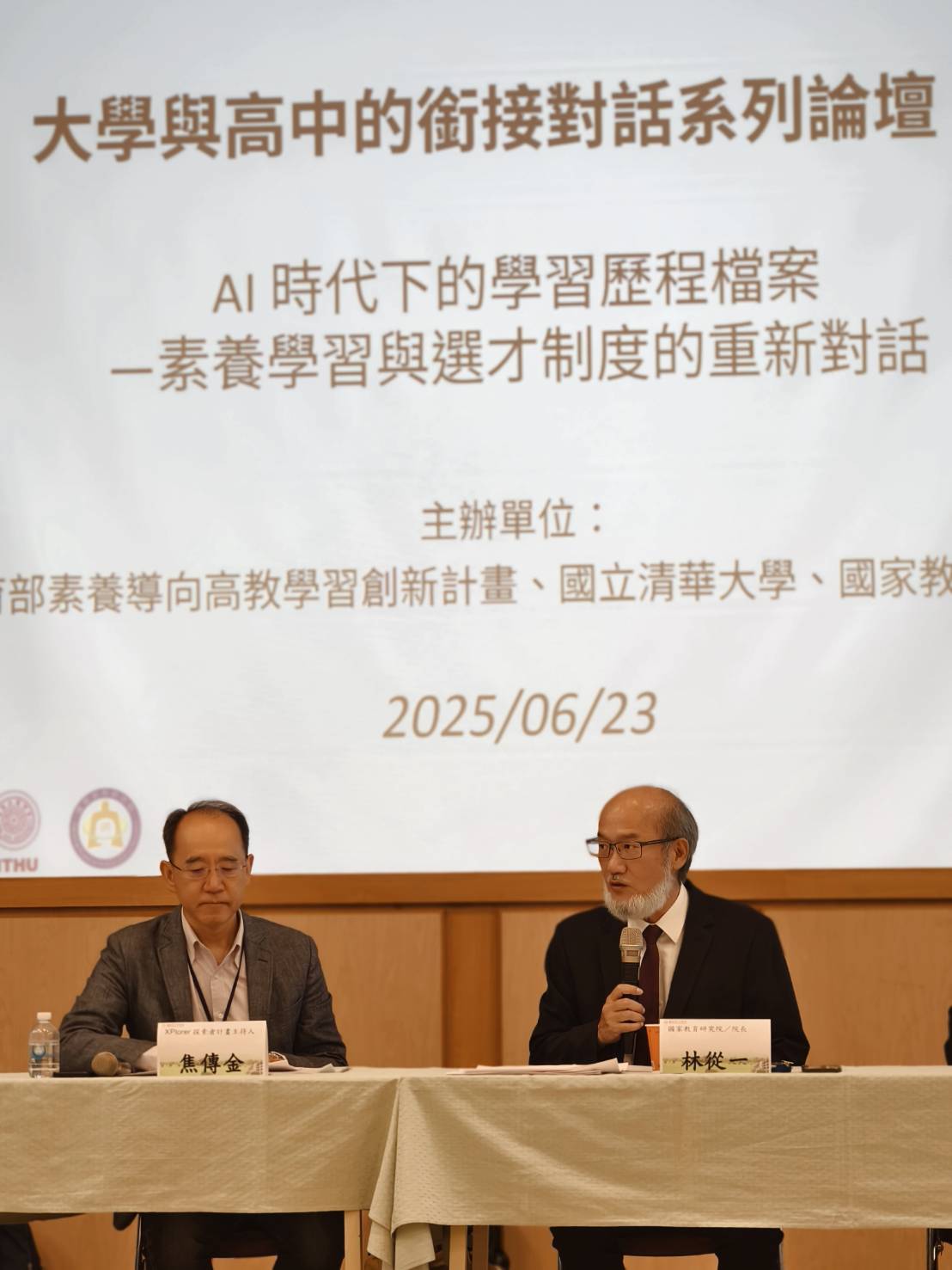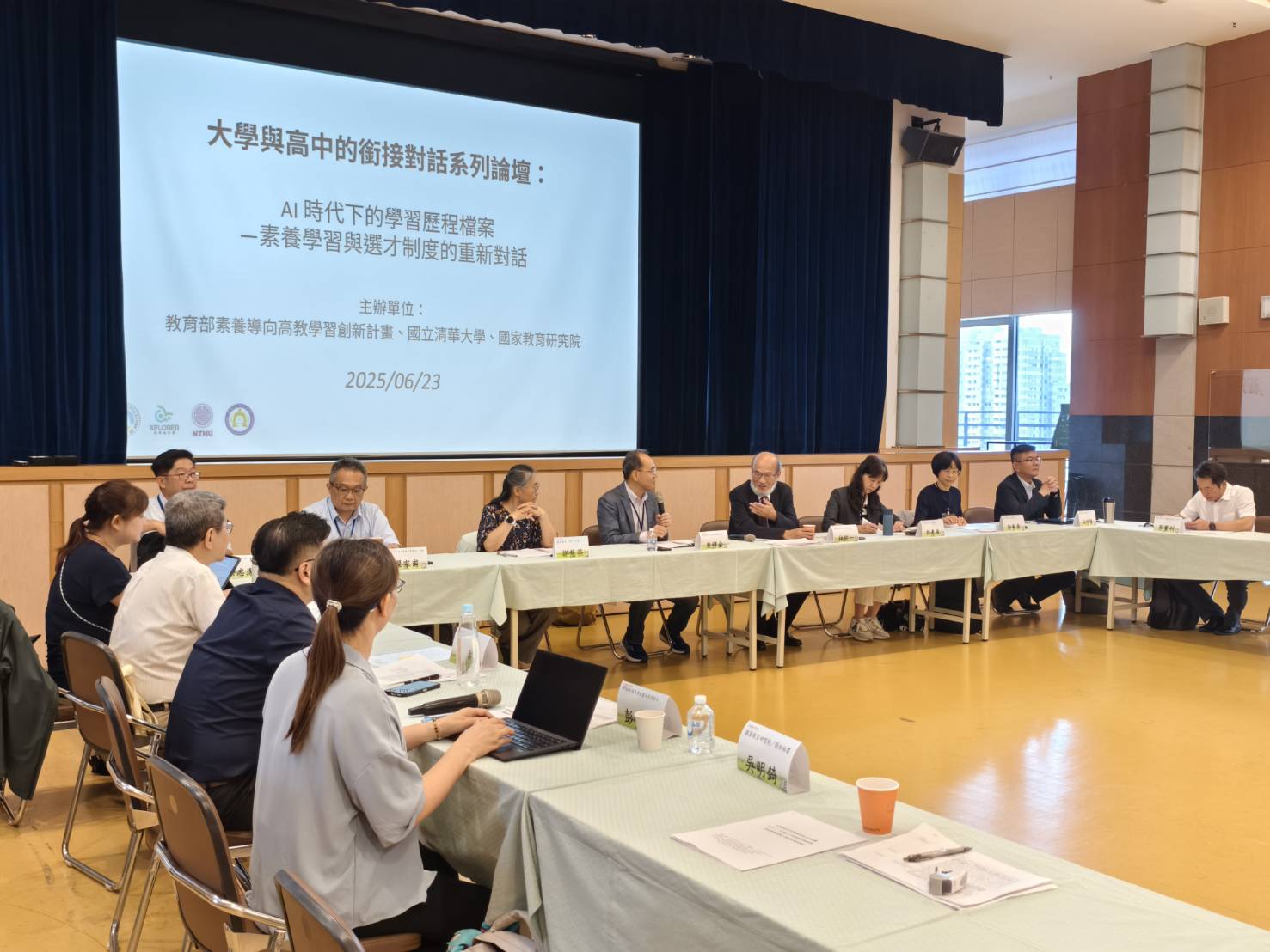 國家教育研究院與國立清華大學於2025年6月23日上午在國教院臺北院區舉辦「大學與高中的銜接對話系列論壇」首場活動,主題聚焦「少子女化AI時代下的學習歷程檔案---素養學習與選才制度的重新對話」,邀請全國北中南東各區域高中大學端教育工作者與政策研究人員共同參與,針對學習歷程檔案面臨的挑戰與優化方向進行深度對話。