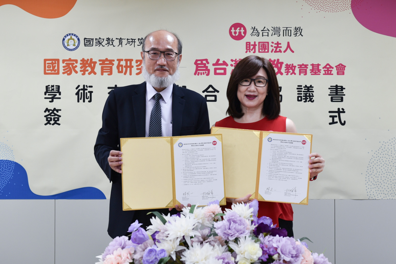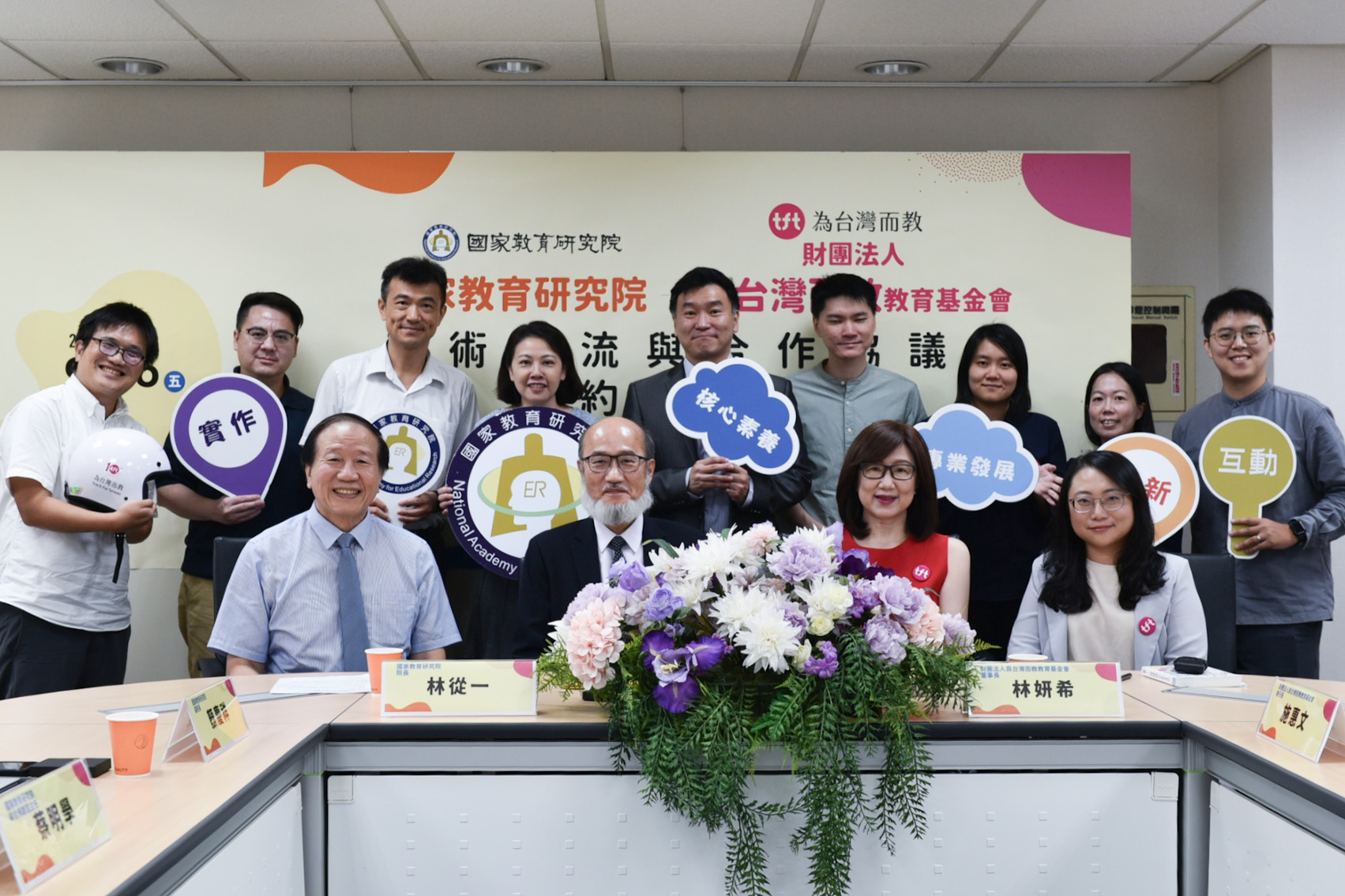 本院林從一院長表示,此次MOU的簽署象徵國教院與TFT攜手合作,共同努力推動教育平權與研究創新,期待雙方共同為臺灣教育注入更多資源與活力,也為教育現場提供更有效的支持方案。TFT董事長林妍希亦回應,很高興能透過MOU共同為多元的教育樣貌建立更完整的資料及數據,進而精進偏鄉教師專業發展路徑。